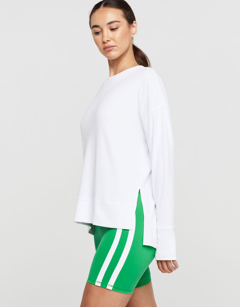 The SHELBY Sweat is the coziest sweatshirt for popping on as you head to your workout class, or for keeping warm at home. Shelby features a loose, relaxed fit, dropped shoulders, and high-low hem. She comes in many different colour ways so that you can complete every outfit! Choose from Strawberry, Kelly Green, Navy Blue, Light Blue, or White.