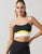 The colour-block construction in black, white, blue and yellow creates visual interest while the streamlined silhouette works seamlessly under layered clothing. The bra's thoughtful construction allows for full range of motion, making it an ideal choice for practitioners who value both comfort and style. Pair with the Dune leggings to complete a cohesive, functional activewear set designed for mindful movement.